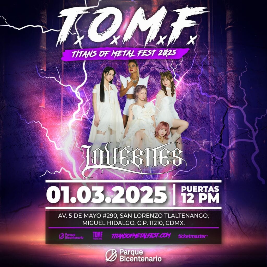 La escena del metal internacional está de fiesta. Lovebites, la icónica banda japonesa de power metal, ha confirmado su participación en el prestigioso Titans of Metal Fest, que se llevará a cabo el 1 de marzo de 2025 en el Parque Bicentenario de la Ciudad de México
