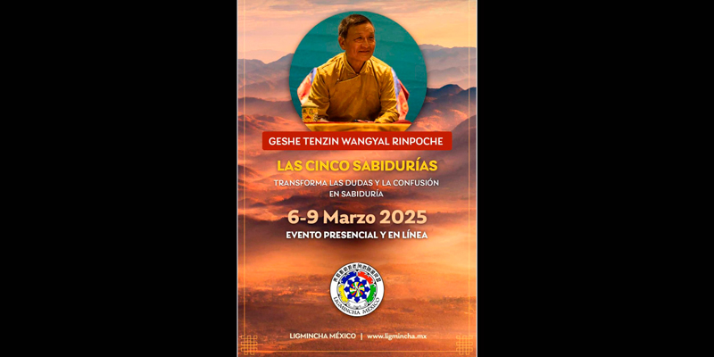 Las Cinco Sabidurías despiertan en nuestra mente aper- tura, potencial, calidez y creatividad de forma ilimitada. Lama Tenzin Wangyal Rinpoche enseñará paso a paso du- rante este retiro cómo reconocer estos aspectos, así como las técnicas ancestrales de meditación que poten- cializan la transformación de nuestras dudas y falta de claridad, en la esencia pura de la sabiduría.