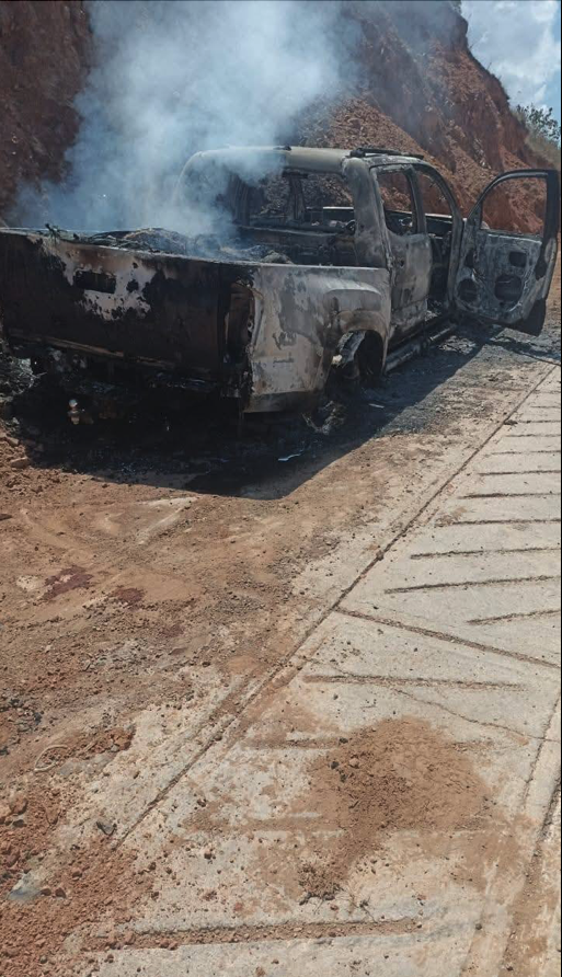 A través de las redes sociales, al medio día de este viernes 28 de febrero, los comunitarios reconocían que tenían una baja cuyo cuerpo calcinado al interior de una patrulla fue identificado como Roberto García Cantú.