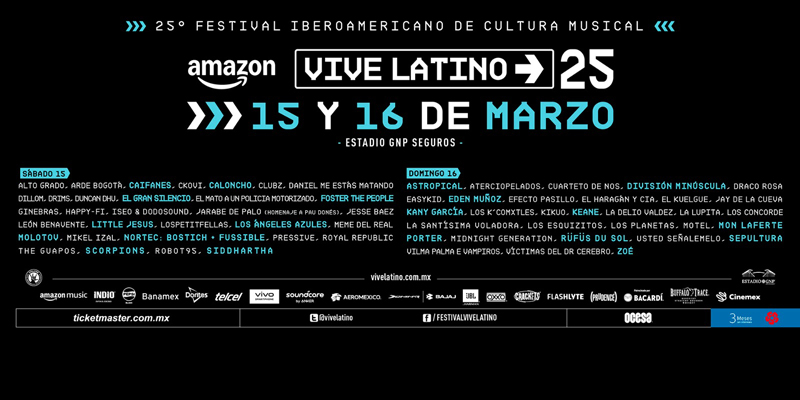 El sábado 15 de marzo el Vive Latino tendrá varios actos interesantes en diferentes de sus escenarios, por lo que aquí te mostraremos las presentaciones y sus horarios.