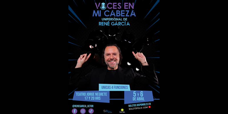 «Voces en mi cabeza» es un espectáculo unipersonal que combina anécdotas, canciones y un despliegue visual para conectar con el público de una manera íntima y emotiva. René García, con su versatilidad y talento, dará vida a las diversas voces que lo han acompañado a lo largo de su carrera, desde las más famosas hasta las más íntimas, creando una experiencia única. Inspirado por su necesidad de regresar al teatro, René García busca ofrecer al público una experiencia donde el juego y la interacción con las voces serán protagonistas.