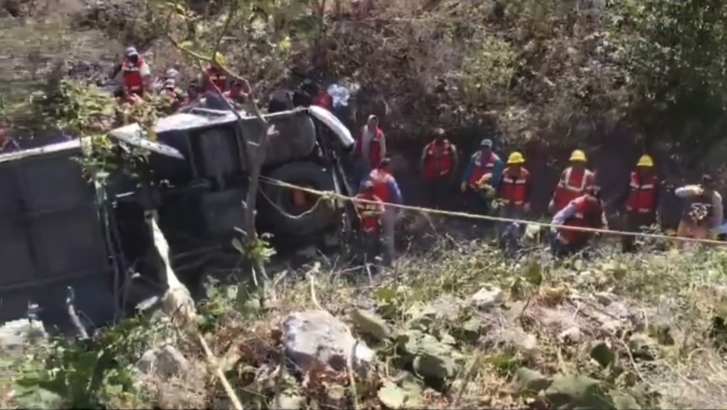 El autobús que transportaba a simpatizantes de Morena que asistieron al Zócalo de la Ciudad de México este domingo, se volcó y cayó a un barranco de 200 metros de profundidad, con saldo de 18 muertos y 25 lesionados, alguno de gravedad.