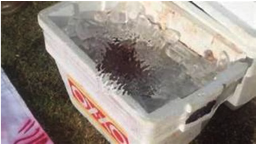 El reporte ministerial indica que hombres armados dejaron la hielera de unicel a un costado de la vía federal.El hecho generó un fuerte despliegue policiaco de fuerzas federales, afuera de una tienda de conveniencia.