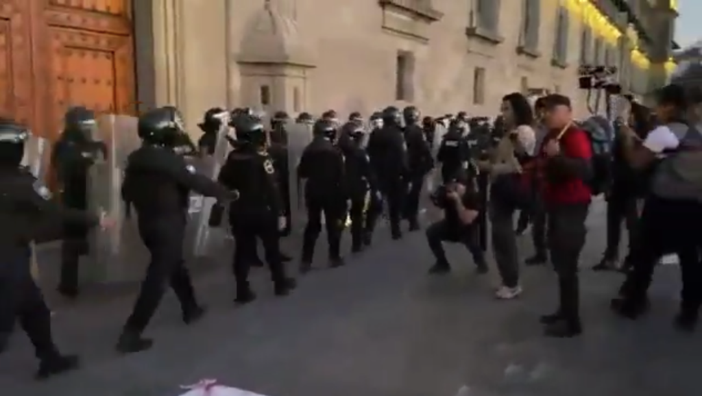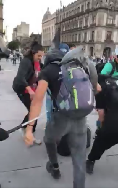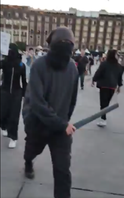 Hombres con el rostro cubierto, con tubos, palos, entre otras “armas”, y en montón, golpearon y patearon a un señor que había llegado temprano al Zócalo para participar en la Vigilia de Madres Buscadoras. Mujeres encapuchadas, lo que no hacen aquellas que marchan pacíficamente, acompañadas de violentos enmascarados, derribaron las vallas que protegen el Palacio Nacional.