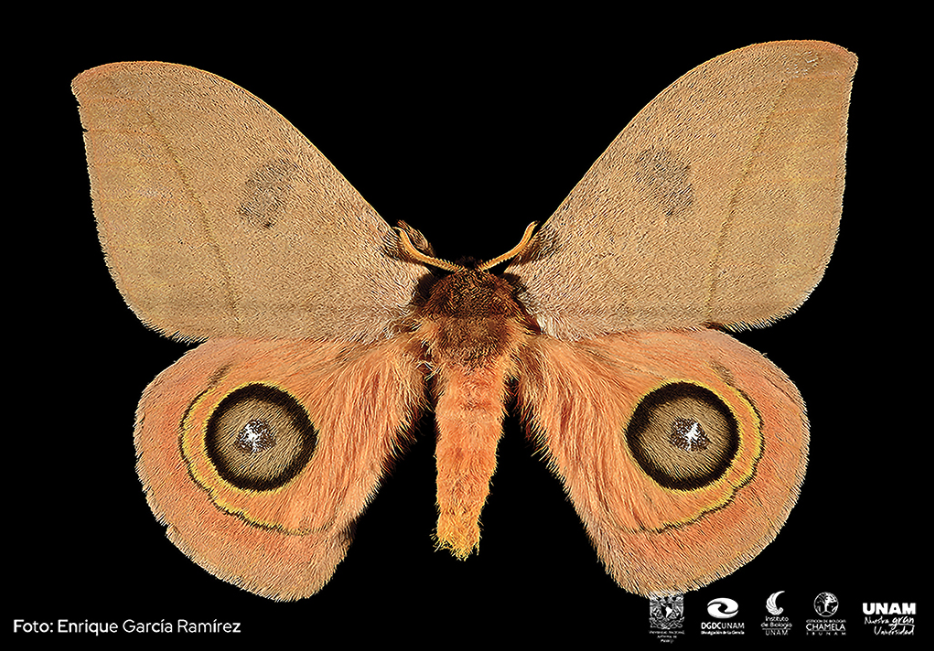 Polilla ojo de venado (Automeris), vista dorsal, 2022.