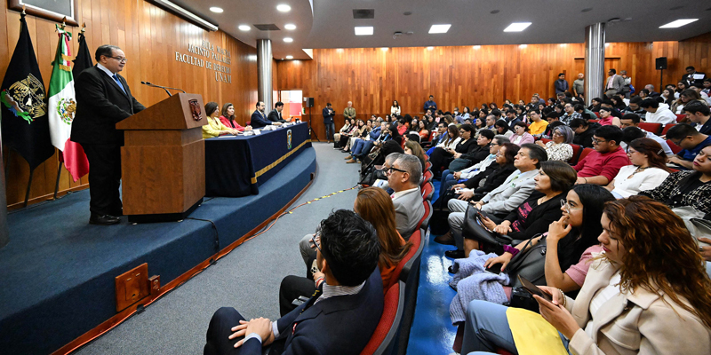 En el Aula Magna “Jacinto Pallares” de la FD, Lomelí Vanegas también refirió que la seguridad social no es un tema accesorio de políticas públicas, ni una categoría meramente técnica: constituye un eje civilizatorio que condensa valores fundamentales como la justicia distributiva, la solidaridad intergeneracional y la garantía de derechos que sustentan la vida en común.