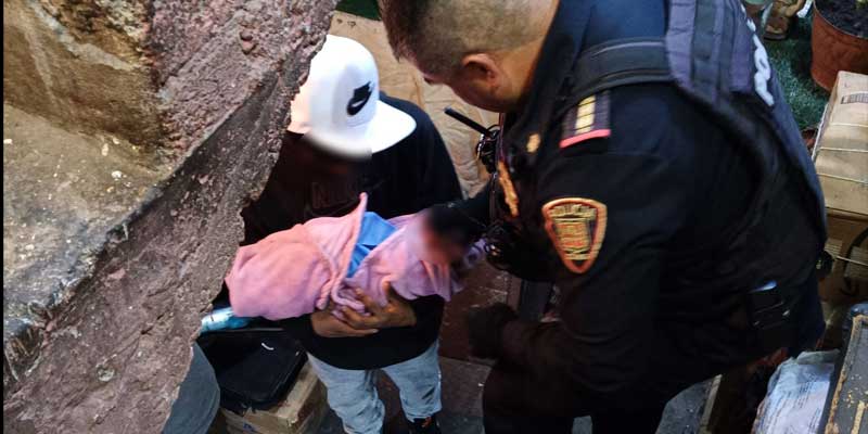 Efectivos de la Policía Bancaria e Industrial (PBI), de la Secretaría de Seguridad Ciudadana (SSC) de la Ciudad de México, en coordinación con una ambulancia, recibieron a su bebé, en calles de la alcaldía Álvaro Obregón.