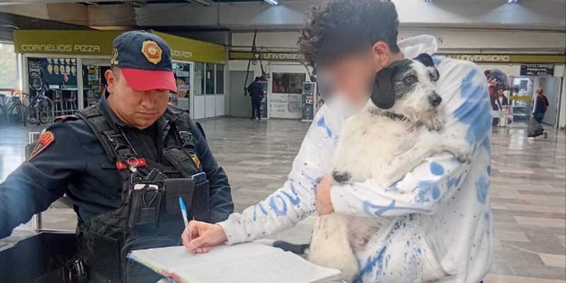 Luego de algunos minutos, los uniformados junto con el personal del Metro, lograron sostener al lomito y trasladarlo a un lugar más seguro, en donde se percataron que de su cuello colgaba una placa en la que estaba un número de teléfono, mismo que marcaron para contactar al dueño, quien refirió que se trasladaría a la estación.
