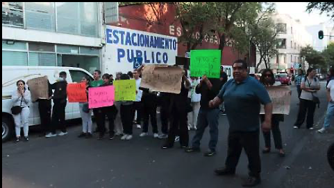 Padres de familia exigieron justicia para Erick, mediante una manifestación con cartulinas frente a los velatorios del Issste ubicados en la colonia San Rafael.