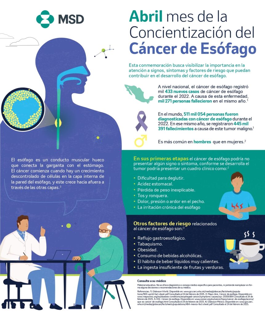 Abril, es el mes de concientización del cáncer de esófago, el cual busca visibilizar la importancia en la atención a signos, síntomas y factores de riesgo que puedan contribuir en el desarrollo del cáncer de esófago.