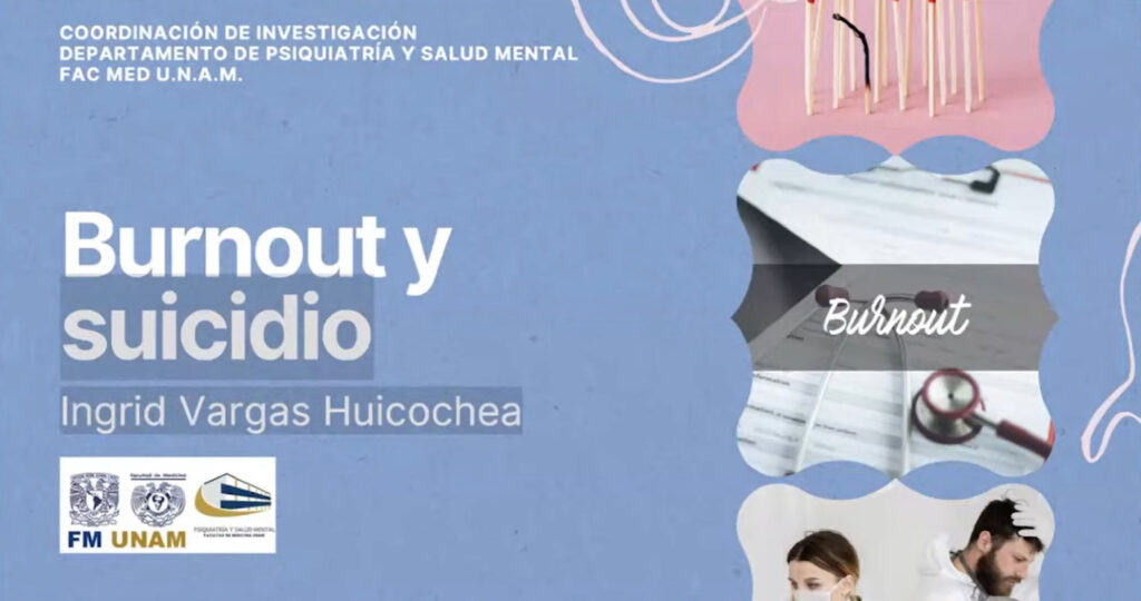El suicidio es la más desafortunada consecuencia del burnout (síndrome referente al agotamiento derivado del desempeño laboral) no identificado ni atendido, señaló la coordinadora de Investigación en el Departamento de Psiquiatría y Salud Mental de la Facultad de Medicina de la UNAM, Ingrid Vargas Huicochea.