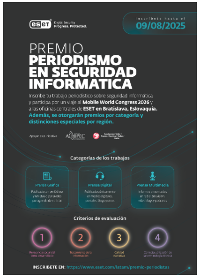 Si desea conocer más e inscribirse al Premio ESET en Seguridad Informática 2025 ingrese a: https://www.eset.com/latam/premio-periodistas/