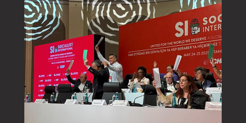 Desde la Internacional Socialista, agregó en la resolución final del encuentro anual, en un espíritu de solidaridad, constituimos un frente común contra el populismo autoritario—ya sea de derecha o de izquierda—que corrompe el orden democrático, altera el equilibrio de poderes, viola los derechos humanos, ataca la libertad de expresión, invisibiliza a las minorías y desmantela los sistemas de partidos, poniendo así en riesgo la estabilidad democrática.