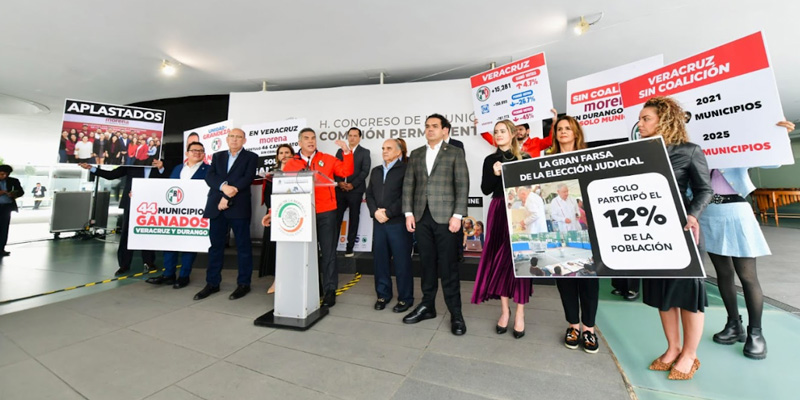 Expuso que en Durango y Veracruz el PRI ganó municipios clave, recuperó territorios y confirmó que donde hay buenos gobiernos, hay confianza del pueblo. Añadió que el priismo está de pie, con estructura, con liderazgo y con resultados.