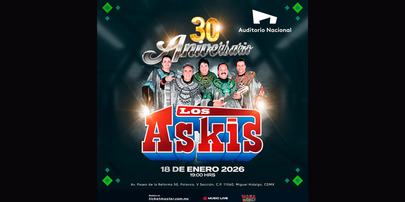 El Auditorio Nacional, conocido como el Coloso de Reforma, será testigo de este momento histórico que no solo celebra los logros del pasado, sino que marca el inicio de una nueva etapa para la agrupación. Con la energía característica que los distingue en el escenario, Los Askis demostrarán una vez más por qué continúan siendo los guardianes de un género que sigue conquistando corazones en México y más allá de sus fronteras. Los Askis se presentan el próximo domingo 18 de enero de 2026 a las siete de la noche.