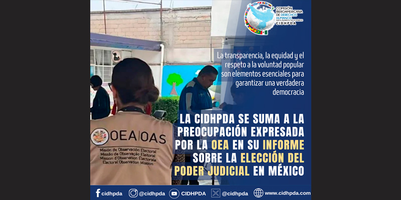El Consejo Nacional de la Comisión Iberoamericana de Derechos Humanos para el Desarrollo de las Américas (CIDHPDA) concuerda con los resultados del informe presentado por la Misión de Observación Electoral (MOE) de la OEA sobre los recientes comicios judiciales celebrados en México.