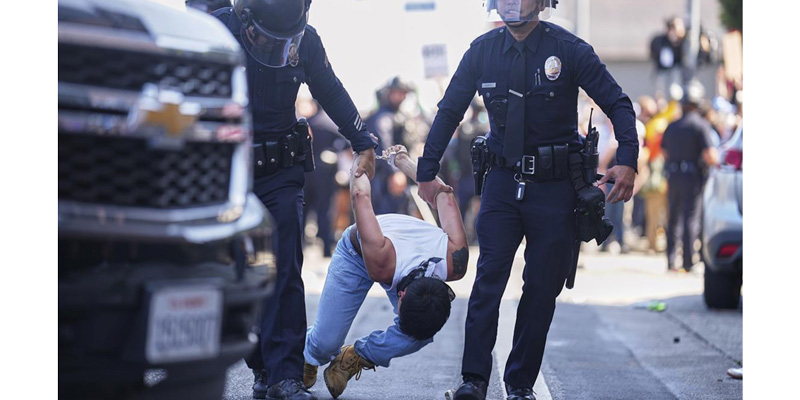 Cabe recordar que desde el pasado 6 de junio, miles de personas se han manifestado pacíficamente en Los Ángeles, California, en respuesta a los hechos que se realizan en una de las ciudades con alta concentración de población latina, no solamente en los centros de trabajo, sino también en escuelas, hospitales, tiendas departamentales, sin que medie a los arrestos ningún tipo de orden judicial.