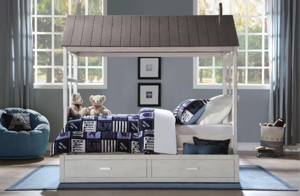 Uno de los elementos más importantes a la hora de amueblar una recámara infantil es la cama, ya que es lo primero que necesitan los niños pequeños cuando ya han superado la cuna y porque es el punto focal de la decoración. Escoge un diseño que se adapte a las necesidades del niño y funcionalidad del espacio. «Elige muebles lo más flexibles posible”, como el diseño Tree House, que es ideal para fomentar su creatividad de pequeños y al mismo tiempo optimiza espacio con el almacenamiento adicional debajo de la cama.