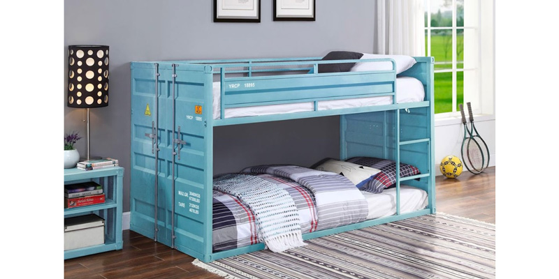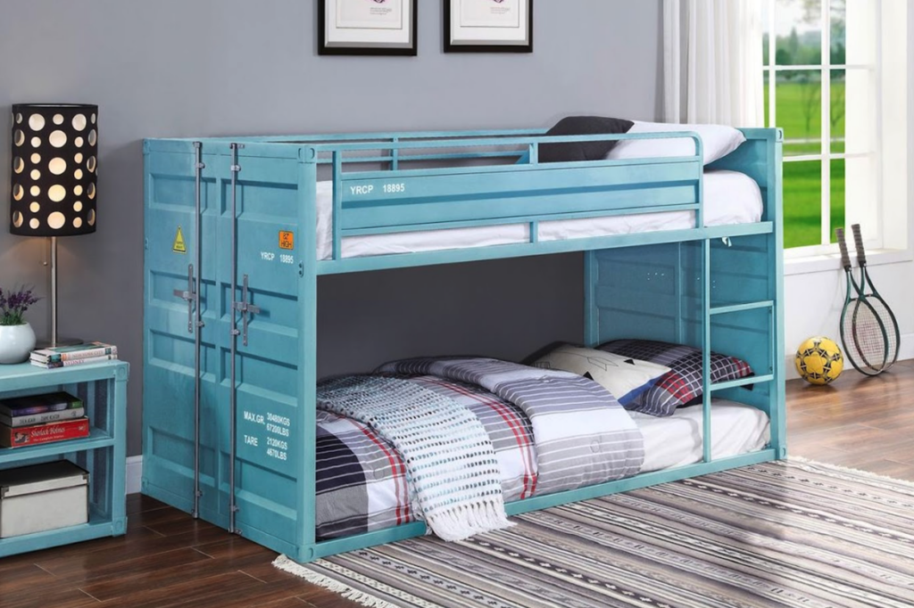 Clásicos del diseño como la Litera Cargo también están disponibles en color azul claro, azul rey, gris y rojo para agregar ese pop de color al cuarto de tus hijos.
