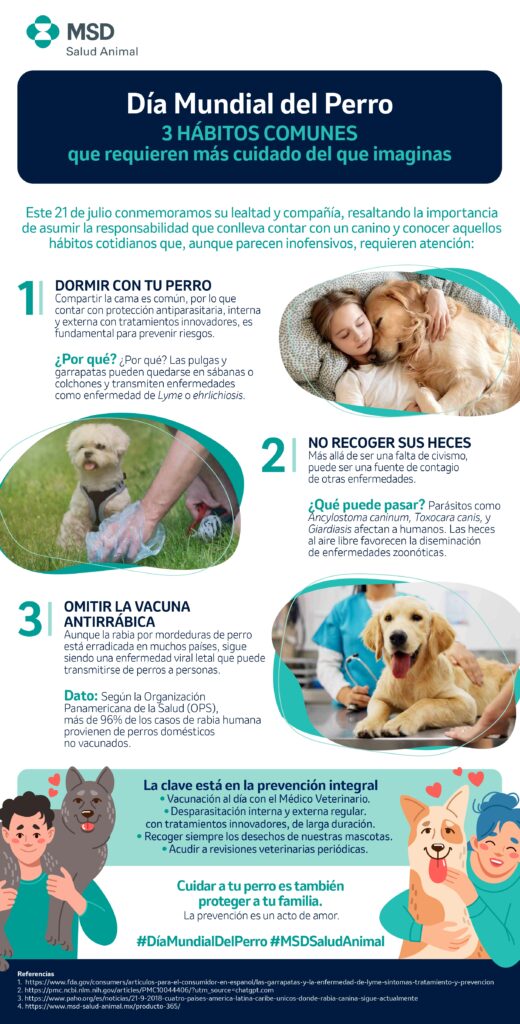 “Más allá de representar un riesgo o motivo de preocupación, estos hábitos deben asumirse como parte de un cuidado consciente, una correcta higiene y, sobre todo, un acto de responsabilidad y amor hacia nuestras mascotas”, puntualizó Alejandro Sánchez, gerente técnico de la Unidad de Animales de Compañía de MSD Salud Animal en México.