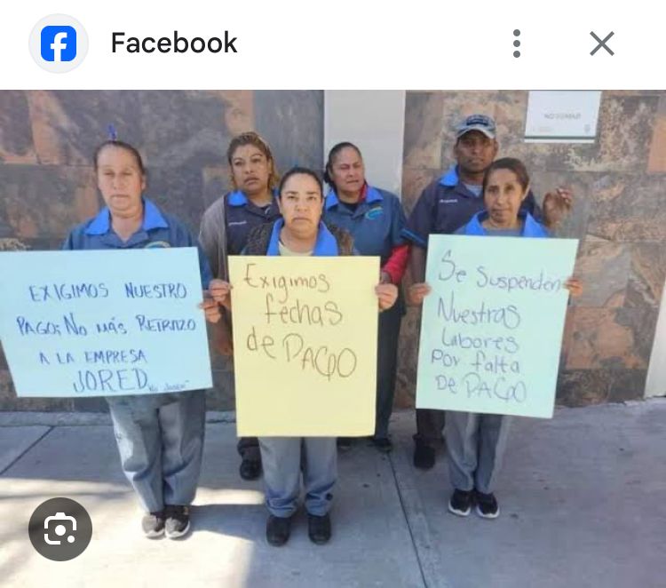 Trabajadores contratados por la empresa con razón social Limpieza Jored, S.A. DE C.V., hacen un enérgico llamado a la Presidenta de la República, Claudia Sheinbaum Pardo, para que se regularicen sus pagos y se acabe con los abusos de esta empresa, que no entregan contratos y corren a los empleados abusivamente.