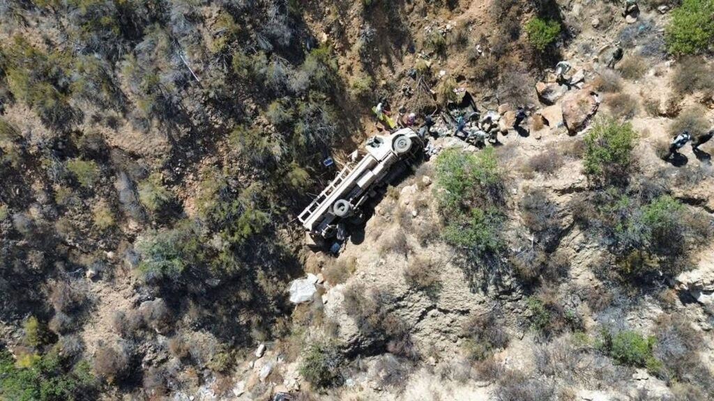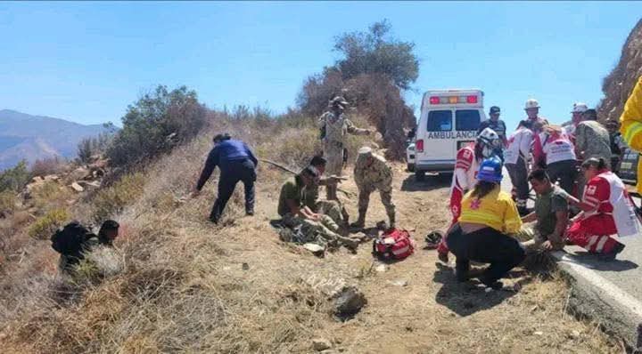 ENSENADA, BC.- La tarde de este miércoles, cuando un vehículo militar circulaba por la carretera a Ensenada-San Felipe, la unidad se precipitó hacia un profundo barranco a la altura del poblado Ojos Negros, cerca del rancho Aguacaliente.