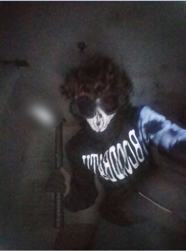 Testigos indican que llegó a la escuela vestido todo de negro, con lentes oscuros la cara cubierta por un paño con imagen de calavera y sudadera con capucha con la que se cubría la cabeza con el pelo revuelto.