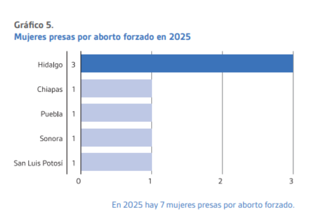 Entre 2024 y 2025 se iniciaron 27 juicios por el delito de aborto forzado. Chihuahua tiene el mayor número de juicios en curso (6), seguido por San Luis Potosí y Sonora con tres juicios cada uno.