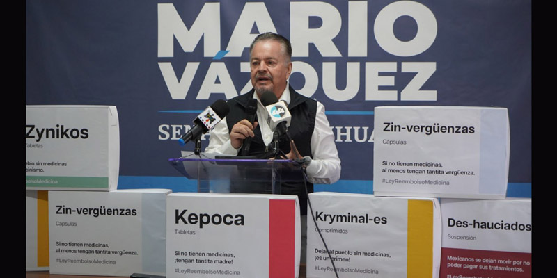 “Si el gobierno no tiene medicinas, que te las pague”, sentenció el senador del Partido Acción Nacional (PAN) por Chihuahua, Mario Váquez Robles, al dar a conocer esa iniciativa promovida por el Grupo Parlamentario panista en la Cámara Alta, a propuesta del legislador Agustín Dorantes.
