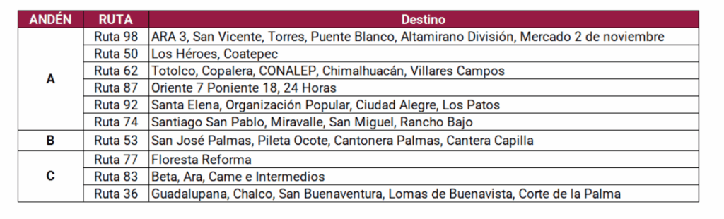 La Secretaría de Movilidad (SEMOVI) informa el reordenamiento temporal de las rutas que operan en los andenes de la sección poniente de este importante nodo de transporte.