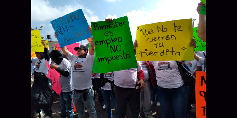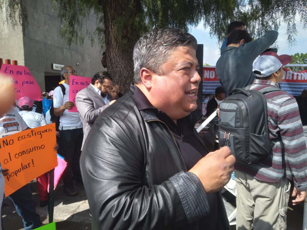 «Trajimos firmas de rechazo», recalcó entrevistado en medio de un mitin realizado afuera del Palacio Legislativo de San Lázaro, donde cientos de quejosos afectaron el tránsito en la calle Emiliano Zapata, a un costado de la Cámara de Diputados, al protestar contra dicho proyecto para aumentar el IEPS; incluso mostraron pancartas con leyendas como «bienestar es empleo no impuesto «, «que no te cierren tu tiendita», «el pueblo no es caja chica».