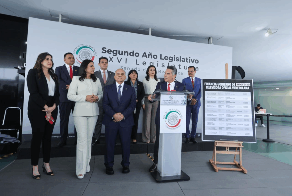 El senador y presidente nacional del PRI, Alejandro Moreno Cárdenas, ofreció una conferencia de prensa en la que denunció que el gobierno de Morena recurre a prácticas de corrupción, manipulación de información y vínculos con el crimen organizado para mantener una imagen favorable ante la ciudadanía.