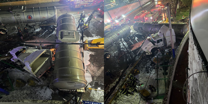 De acuerdo al reporte de los elementos de la SSC CDMX en campo, informaron que el conductor es un varón de aproximadamente 38 años, quien les indicó que al dar la vuelta perdió el control y se impactó contra el muro de contención. El chofer no resultó lesionado, dijeron, y que los tanques de los remolques estaban vacíos.