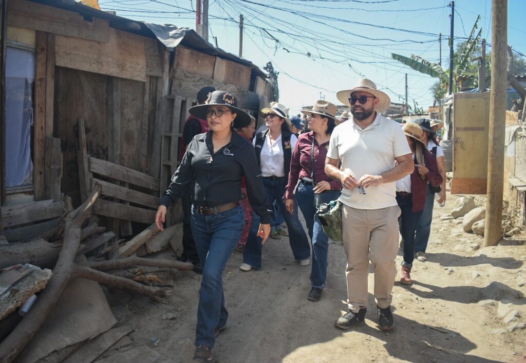 La Subsecretaria de Prevención de las Violencias de la Secretaría de Seguridad y Protección Ciudadana (SSPC), Esthela Damián Peralta, recorrió hoy casa por casa la Zona Cañón del Padre, en la colonia Rincón Dorado, en Tijuana, Baja California.
