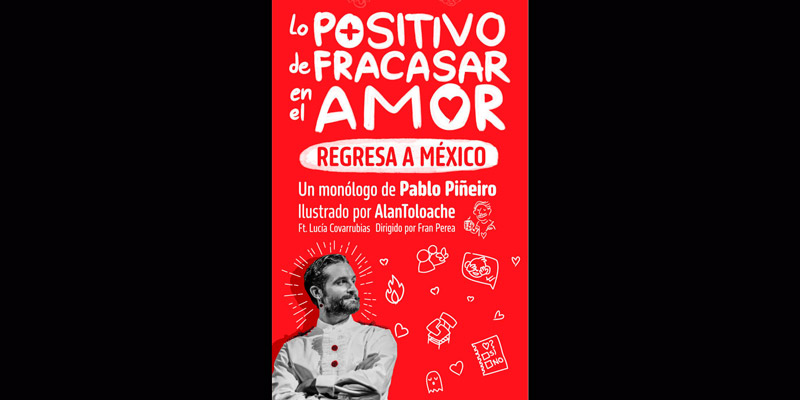 El monólogo “Lo positivo de fracasar en el amor”, escrito e interpretado por Pablo Piñeiro y dirigido por Fran Perea, regresa a la Ciudad de México para confrontar con sarcasmo y ternura los ideales del amor romántico. La puesta en escena busca un objetivo claro: «llegar a las personas desde el humor para generar una reflexión con relación a cómo vivimos el amor y los vínculos que establecemos».
