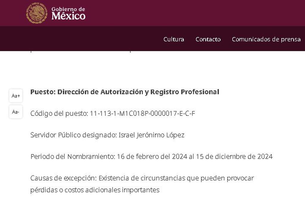 Las cédulas de maestría y doctorado del funcionario fueron emitidas precisamente por el área de Autorización y Registro Profesional, la misma que él mismo encabeza desde el 16 de febrero de 2024 (https://acortar.link/n7bjk4). Ambas cédulas fueron expedidas en abril de 2024, y de forma igualmente irregular: primero la de doctorado (4 de abril) y luego la de maestría (11 de abril).