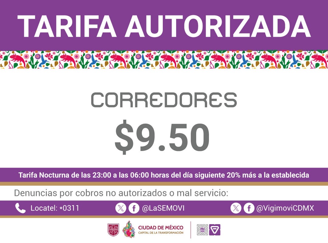Se autoriza el incremento de $1.50 (un peso con cincuenta centavos M.N.) a las tarifas actuales del transporte de Ruta y Corredor (estas disposiciones serán publicadas en la Gaceta de la Ciudad de México).