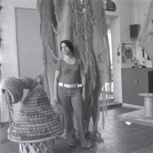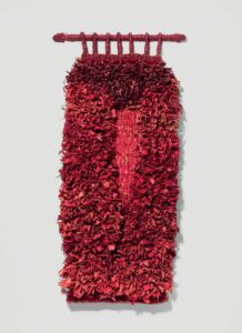 En la muestra se exhiben dos obras clave en la trayectoria de la artista: Cascada (1978) e Ilerda V (1973), un tapiz tejido en telar que lleva el nombre romano de la ciudad de Lleida, a la que Palau vinculaba su interés por este soporte: “Yo empiezo con los materiales; una vez tengo los materiales, ellos me van diciendo cómo… Tiene que ver con mis orígenes. Yo nací en un pueblecito de campesinos, Albesa, y la tierra es lo más importante, la tierra es sagrada. El tapiz me llegó por ahí”.