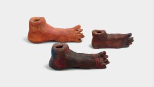 La simbología de sus piezas, a través de la representación del ojo, la mano y el pie, nos lleva a pensar las cosmologías del cielo, la tierra y las raíces. La finitud del cuerpo físico deja un rastro que interpela a una memoria que lo traspasa para instalarse en la memoria de los imaginarios colectivos.