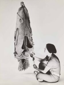 La relación de la artista con el textil se originó por contacto con ciertas tradiciones ancestrales del continente americano. Palau viajó a Cataluña en 1968 y su aprendizaje junto a Josep Grau-Garriga, maestro textil que había colaborado con Joan Miró y Antoni Tàpies, entre otros, sería decisivo para profundizar en la técnica del tapiz en aquel viaje de descubrimiento de la tierra de sus padres, donde ella había nacido y con la que tenía una poderosa conexión.