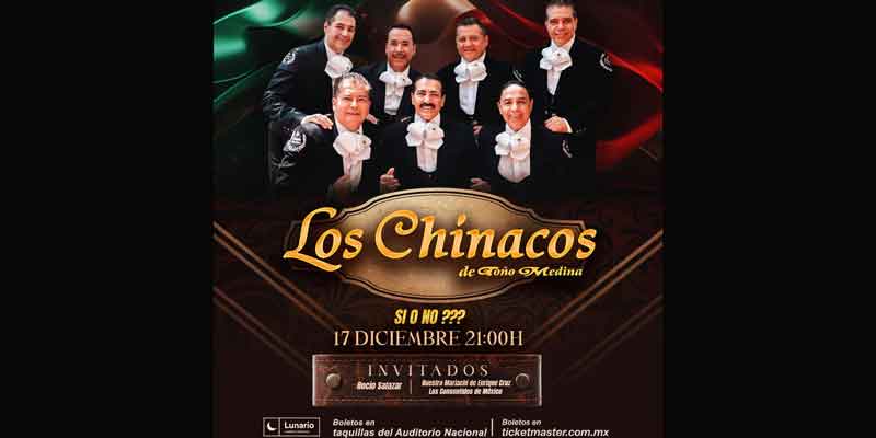 El Lunario del Auditorio Nacional será testigo de una noche inolvidable el miércoles 17 de diciembre a las 21:00 horas, cuando Los Chinacos de Toño Medina se presenten en un concierto especial que evocará lo mejor de la música mexicana de todos los tiempos.