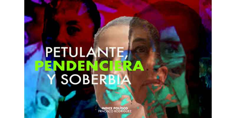 Por eso, cuando se juntan la petulancia y la soberbia es como cuando se encuentran en una mesa el hambre y las ganas de comer. Son, como todos los binomios, inseparables y demoledores.‎ El atributo personal de la petulancia se posesiona de las almas débiles y por lo mismo rencorosas, revanchistas y vengadoras. Peor, todavía, cuando a ello se suma una conducta pendenciera in crescendo, como la que la señora ha mostrado en sus mentiñeras de las últimas semanas.