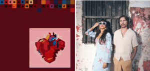 Izquierda: Portada de «Muérdeme», diseñado por Juanes. Derecha: Liliana «Li» Saumet de Bomba Estéreo & Juanes
