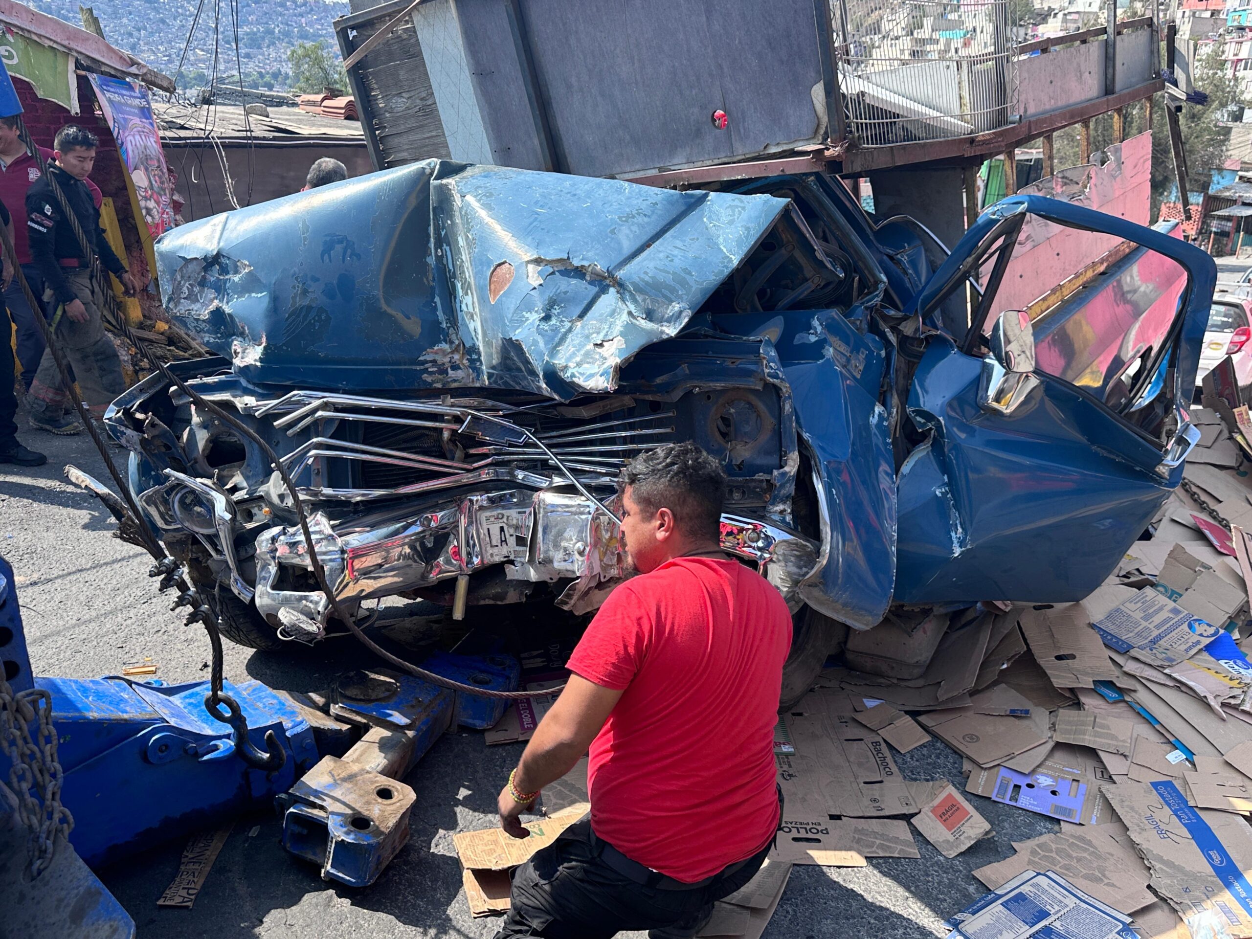 Los hechos ocurrieron en la avenida Molina Enríquez a donde se movilizaron los cuerpos de emergencia, luego de que cámaras del Centro de Mando confirmaran un percance vial entre una camioneta Chevrolet cargadacon cartón, la cual al parecer se quedó sin frenos en la pendiente, primero impactó a un auto Aveo y luego chocó contra un muro.