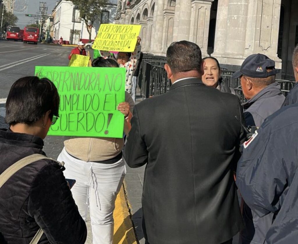 A la par, un grupo de mujeres, entre ellas esposas de los ex trabajadores y ex servidoras públicas, se manifestan este lunes desde las 9:00 AM en Palacio de Gobierno de Toluca, donde se encadenaron para exigir que la presidenta municipal cumpla el acuerdo.