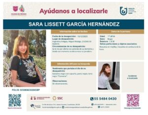 La Fiscalía General de Justicia de la Ciudad de México (FGJCDMX) emitió una cédula de búsqueda para localizar a Sara Lissett García Hernández, de 17 años, quien desapareció este 19 de diciembre en la colonia Antigua Argentina de la alcaldía Miguel Hidalgo.