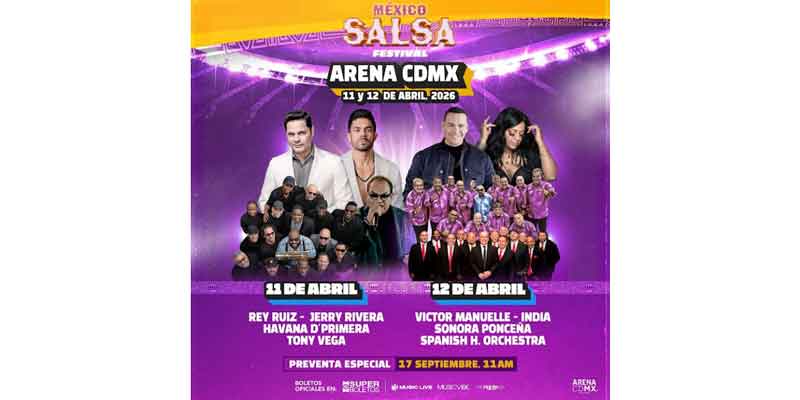 La Ciudad de México se prepara para convertirse en un templo del ritmo, un territorio donde la memoria, el sudor y el corazón vuelven a latir al compás de la salsa. El México Salsa Festival llegará los próximos 11 y 12 de abril de 2026 a la Arena CDMX, donde dos noches continuas prometen desbordarse como un huracán sonoro capaz de estremecer hasta los cimientos de la ciudad.