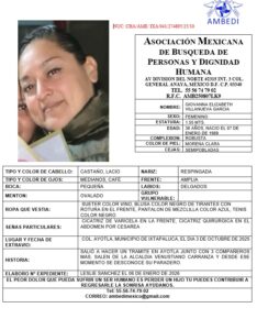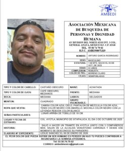 La Asociación Mexicana de Búsqueda de Personas y Dignidad Humana (AMBEDI), que preside Elena Solís, emitió cuatro cédulas de búsqueda para localizar a mismo número de personas desaparecidas desde el 3 de octubre de 2025, en el Estado de México.