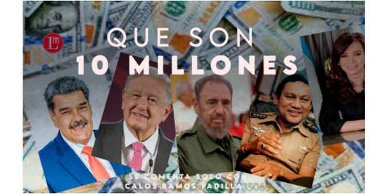 Pero haré de decir que México está muy alejado de esto ya que aquí se trata de convencer de que el presidente vive con 200 pesos en la bolsa, con un par de zapatos, en austeridad republicana o pobreza franciscana y ofreciendo abrazos a los delincuentes para que se porten bien. El hecho de que la parentela no solamente no oculten sus lujos y despilfarros sino los presuman en tiendas, yates, autos y aviones suntuosos es producto de las “señoras” con las que viven además de que por herencia son propietarios de generosas hectáreas. Total que son 200 pesos frente a diez mil millones de dólares del “hermano bolivariano”. Hay de izquierda a izquierdas, pues.