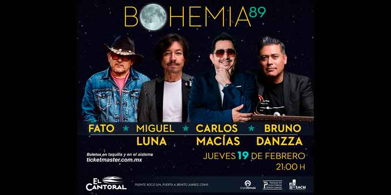 El jueves 19 de febrero a las 21:00 horas tienes una cita en El Cantoral para la Bohemia 89. Adquiere tus boletos en ticketmaster.com.mx o directamente en la taquilla del recinto.